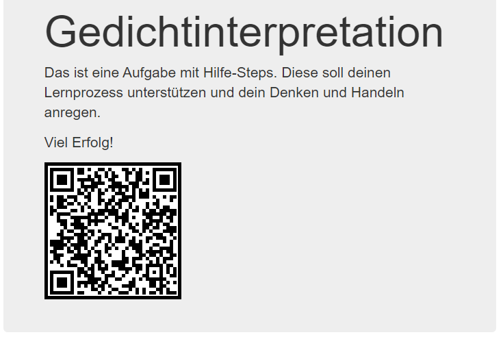 Die Aufgaben und Hilfen können Sie für Ihre Schüler sowohl in der Schule, als auch beim selbstständigen Lernen zu Hause einsetzen. Der QR-Code leitet die Schüler direkt zur Aufgabe. Dort stehen ihm die von Ihnen gestalteten Lernhilfen zur Verfügung. Der Lösungsweg kann so von Ihren Schülern selbstständig oder mit Hilfe gefunden und überprüft werden.