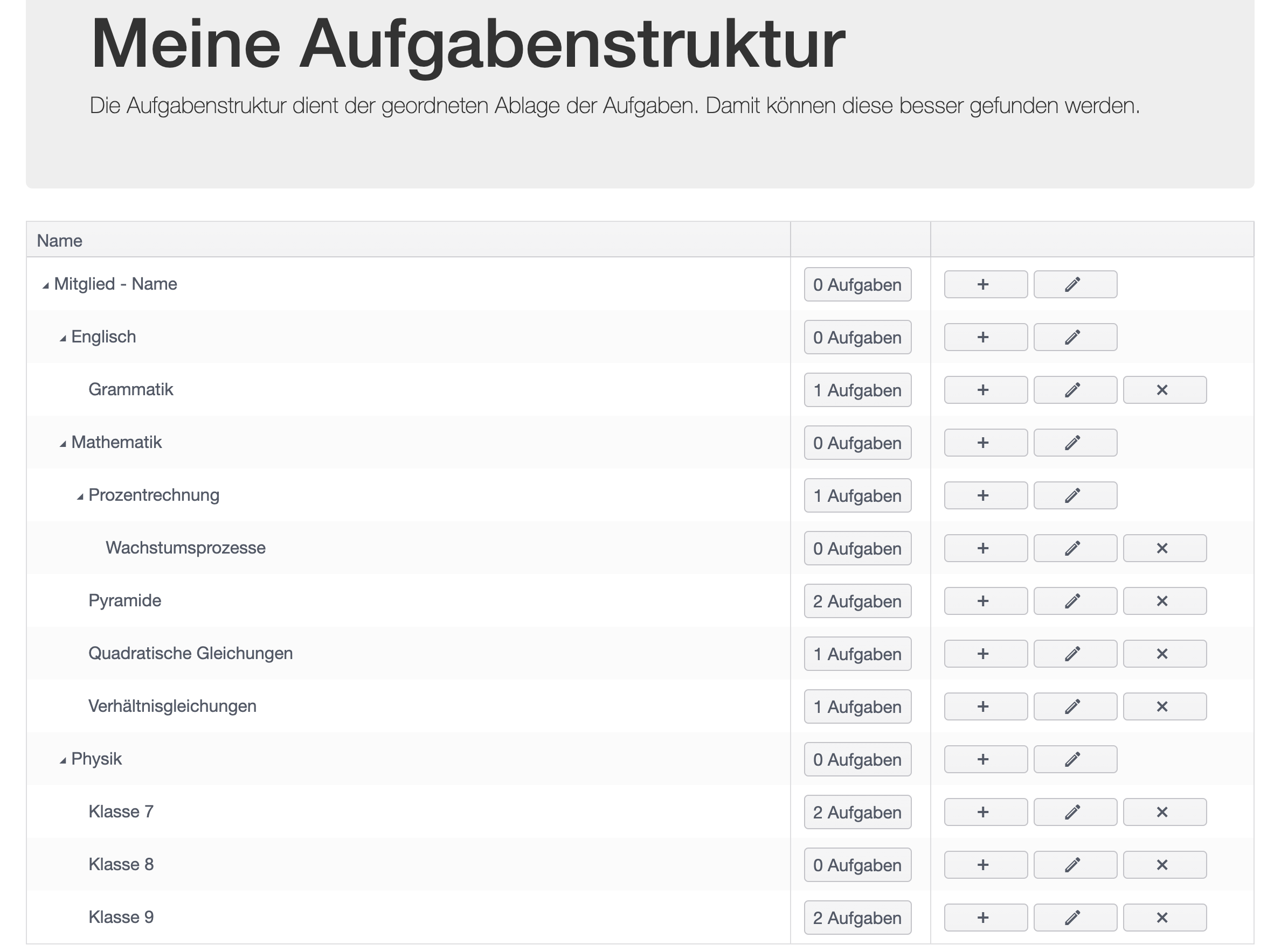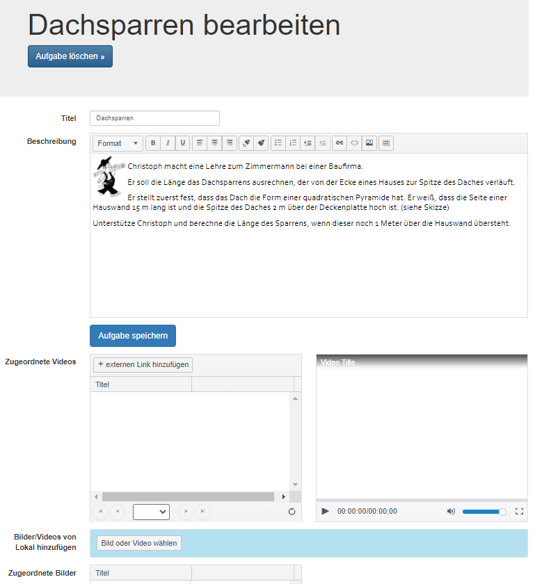 Fügen Sie das neue Thema, die erste Übung oder eine Problemsituation als neue Aufgabe in Ihrer individuellen Ordnerstruktur ein. Ergänzen Sie passende Bilder oder einen Link zu einem Erklärvideo.